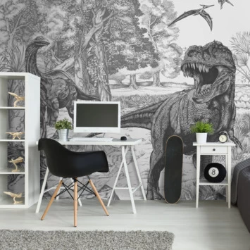 Met het PVC vrije Fotobehang Dino Sketch Mural (111396) van Art for the home maak je van een saaie muur in je kamer een echte eyecatcher. Dit trendy fotobehang met een geschetste Dino afbeelding is gedrukt op vliesbehang. Het wordt geleverd in 6 banen van 50cm. Vliesbehang breng je heel gemakkelijk aan en is ook gemakkelijk te verwijderen, zonder daar een behangtafel of afstomer bij nodig te hebben. Je lijmt eenvoudig de muur in en het behang kan worden geplakt. Voor het beste resultaat dienen de te beplakken oppervlakken droog, vlak en egaal van kleur te zijn. Kortom, kies voor het Fotobehang Dino Sketch Mural (111396) wanneer je opzoek bent naar een Dino kinderbehang. Of bekijk ons ruime assortiment behang bij GAMMA en ontdek alle speelse, vrolijke kleuren en grafische afbeeldingen voor jongens en meisjes. Dit behang is alleen online en via de zuil in de bouwmarkt te bestellen.
