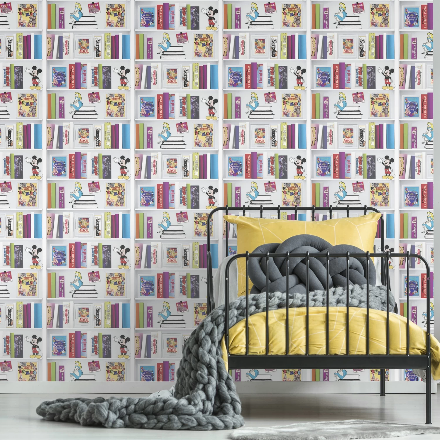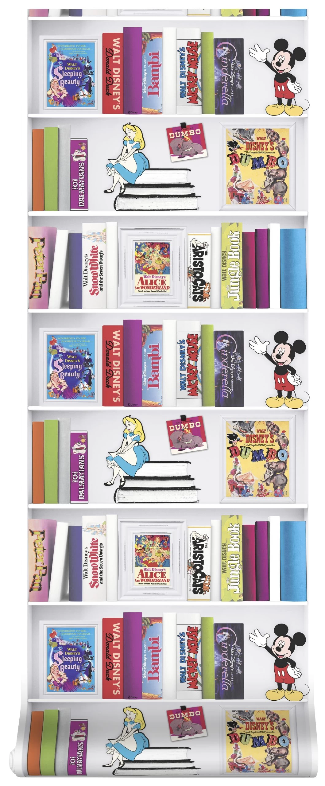 | Dessin | Print van een boekenkast met Disneyboeken en -figuren |